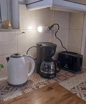 stanza da letto con letto matrimonia ,con frigo e bollitore , tv, WiFi e veranda.